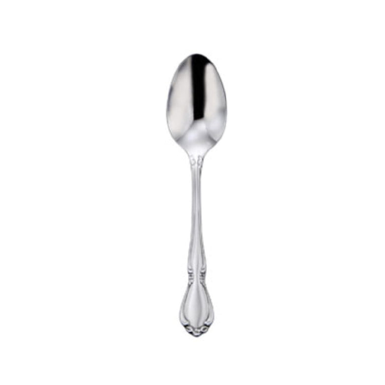 The 1880 Hospitality 2610SFTF Oneida® Child Teaspoon 5-1/4" Fiddle Back Shape is a meticulously crafted utensil that combines elegance and functionality, designed for both residential and commercial hospitality settings. This child teaspoon features a distinctive fiddle back shape, which is both aesthetically pleasing and ergonomically sound, making it suitable for young users. The scrolled motif pattern, complemented by delicate flower accents, adds a touch of sophistication, making it a charming addition to any table setting. Constructed from 18/8 stainless steel, this teaspoon ensures durability and resistance to corrosion, ensuring a long lifespan even with frequent use. The polished finish enhances its visual appeal, making it a suitable choice for upscale dining environments where presentation is key. At 5-1/4 inches in length, it is appropriately sized for children, offering ease of use and comfort. The Chateau™ collection, from which this teaspoon hails, is synonymous with quality and style, making it a preferred choice for establishments that prioritize both aesthetics and functionality. This child teaspoon is particularly suitable for restaurants, hotels, and catering services looking to provide a refined dining experience for their young patrons.