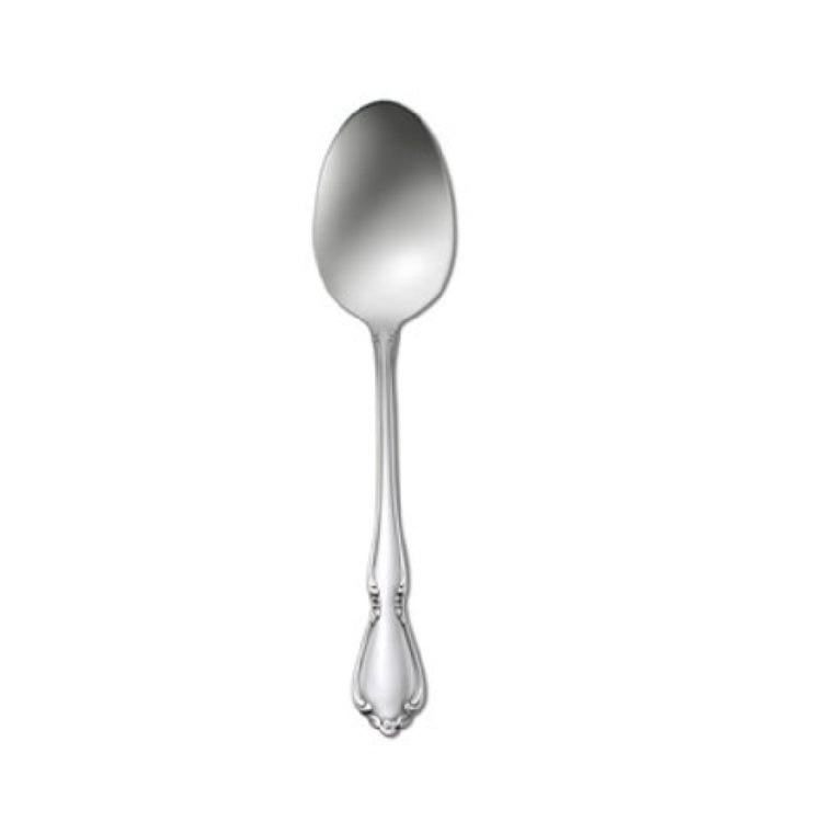 The 1880 Hospitality 2610STBF Oneida® Tablespoon/Serving Spoon stands out with its 8-1/4" length, making it a versatile addition to any dining setting. Featuring a fiddle back shape, this spoon elegantly combines design and functionality, appealing to both casual and formal dining environments. Its scrolled motif pattern, complemented by delicate flower accents, adds a touch of sophistication to the utensil. Made from high-quality 18/8 stainless steel, it offers exceptional durability and resistance to corrosion, ensuring a long-lasting polished finish that maintains its shine over time. The Chateau™ collection, to which this spoon belongs, is renowned for its timeless and classic style, making it an ideal choice for hotels, restaurants, and catering services aiming to enhance their table presentations. The blend of aesthetic appeal and robust construction makes the 1880 Hospitality 2610STBF Oneida® Tablespoon/Serving Spoon a practical and stylish solution for diverse market segments in the hospitality industry, catering equally to the needs of upscale dining establishments and high-volume food service operations.