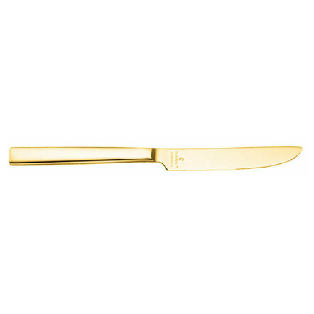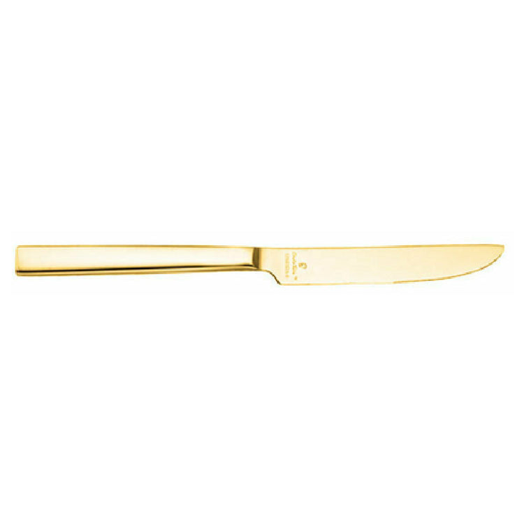 The 1880 Hospitality B408KDTF Oneida® Dinner Knife 9-1/2" 18/0 Stainless Steel is a fine example of craftsmanship and functional design, perfect for upscale dining experiences. Measuring 9-1/2 inches, this dinner knife is crafted from 18/0 stainless steel, providing a durable and corrosion-resistant utensil that stands up to frequent use while maintaining its polished appearance. The gold finish of this piece adds an elegant touch, aligning with the Chef's Table Gold™ collection, which is renowned for its sophisticated aesthetic. This knife is particularly suited for restaurants, hotels, and catering services that aim to deliver a premium dining experience. Its weight and balance offer a comfortable grip, ensuring ease of use for various culinary presentations. The 1880 Hospitality B408KDTF is more than just a utensil; it is a statement piece that enhances table settings and reflects the quality of the service provided. Tailored for the hospitality industry, this knife is an investment in style and durability, meeting the demands of both casual and formal dining environments, while also being an attractive choice for household use due to its luxurious design and reliable construction.