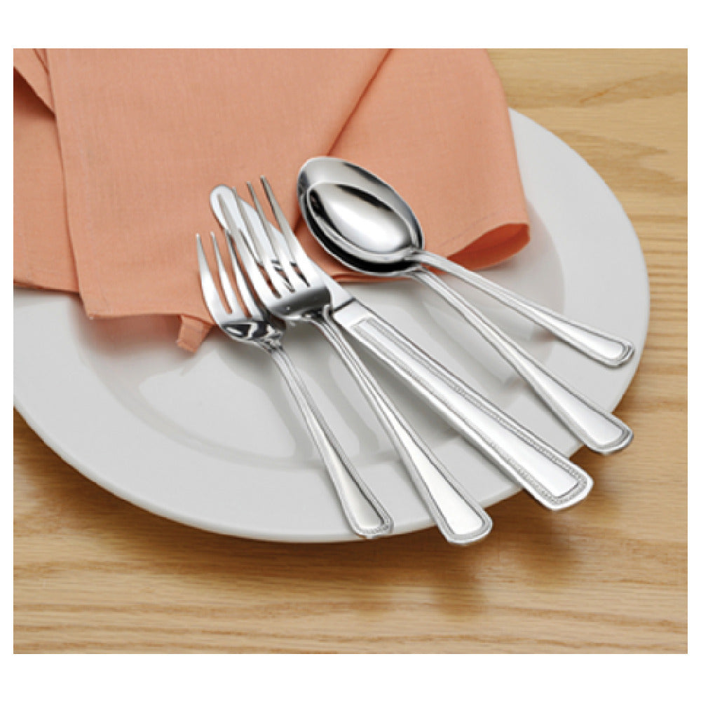 The 1880 Hospitality B561KPNF Oneida® Dinner Knife 8-1/2" 1-piece is an elegantly crafted dining tool designed to enhance any table setting in the hospitality industry. Measuring 8-1/2 inches, this single-piece dinner knife presents a sophisticated beaded border, adding a touch of class to its appearance. Crafted from 18/0 stainless steel, this knife combines durability with a sleek finish, making it an ideal choice for high-volume settings such as restaurants, hotels, or catering services that require both form and function. The Delco® Belmore™ design backs this product with a reputation for quality and reliability in flatware production. While suitable for everyday dining, its resilient construction ensures it can withstand the rigors of frequent use without compromising its aesthetic appeal. This dinner knife represents the perfect blend of elegance and practicality, serving as a key component in any tableware collection, be it for formal events or casual dining experiences. Its design and material composition cater to diverse market segments, from upscale dining establishments to more budget-conscious venues that still prioritize the presentation and quality of their dining implements.
