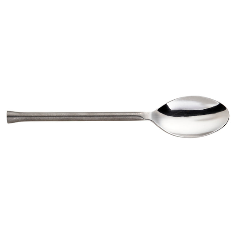 The 1880 Hospitality B582STBF Oneida® Table Spoon/Serving Spoon 9" Forged Pattern is a versatile utensil designed for both everyday dining and professional hospitality settings. Crafted from heavy-weight 18/0 stainless steel, it boasts a durable and long-lasting construction, ideal for various serving needs. The spoon features a 9-inch length, providing optimal reach and comfort for users. Its forged pattern not only adds to its aesthetic appeal but also ensures sturdiness and a balanced feel in hand. The Relic™ finish enhances its visual elegance, making it suitable for upscale dining environments. Named Wyatt, this spoon combines practicality with style, catering to restaurants, hotels, and home dining experiences alike. Its stainless steel composition makes it resistant to rust and corrosion, ensuring longevity even with frequent use. The 1880 Hospitality B582STBF Oneida® Table Spoon/Serving Spoon is a testament to quality craftsmanship, meeting the demands of high-volume food service operations while maintaining a refined appearance for sophisticated table settings. This product is a reliable addition to any cutlery collection, providing exceptional performance for a range of culinary applications.