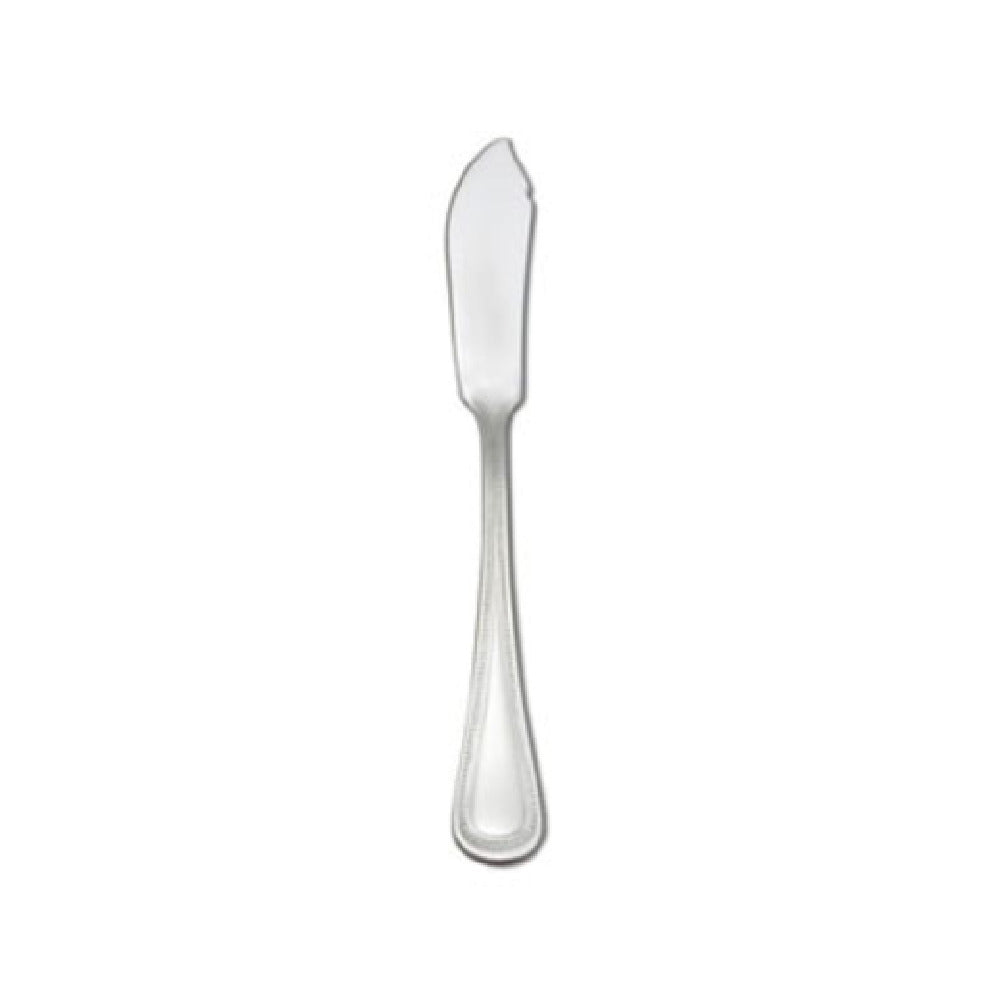 The 1880 Hospitality B595KSBF Oneida® Butter Spreader - 6-7/8" Flat Handle is a meticulously designed utensil that combines practicality with elegance. Crafted from 18/0 stainless steel, this butter spreader offers a unique combination of durability and affordability, making it an appealing choice for both casual dining establishments and high-end hospitality venues. Its flat handle design provides a comfortable grip, enhancing user experience during meal service. The spreader's rounded handle and beaded border add a touch of sophistication, appealing to diners who appreciate subtle yet refined details. As a part of the Delco® Prima collection, it aligns with a legacy of quality and style synonymous with the Oneida® brand. Measuring 6-7/8 inches, this spreader is perfectly sized for efficient butter application, catering to the needs of restaurants, hotels, and catering services seeking reliable and stylish cutlery. Its stainless steel construction ensures resistance to corrosion and staining, promising longevity even in busy service environments. The 1880 Hospitality B595KSBF butter spreader stands as a versatile addition to any dining setting, offering both functionality and an aesthetic appeal that complements a wide range of tableware styles.