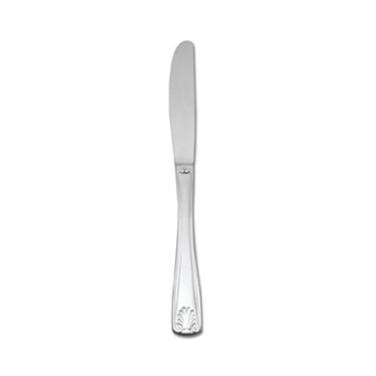 The 1880 Hospitality B606KPVF Oneida® Dinner Knife is a sophisticated piece of cutlery, measuring 8-3/4 inches in length and crafted as a single piece. This dinner knife features a classic shell motif, bringing a touch of elegance to any dining setting. Constructed from 18/0 stainless steel, it blends durability with a polished aesthetic, making it suitable for both casual and formal occasions. The use of 18/0 stainless steel ensures that the knife is resistant to corrosion and maintains its luster even after extensive use, catering to the needs of busy restaurants and hospitality environments. The Delco® Laguna design embodies both style and functionality, providing a comfortable grip for efficient use. This knife is an excellent choice for restaurateurs looking to enhance their tableware with a product that combines timeless design with practical benefits. It addresses the demands of various market segments within the hospitality industry by offering a reliable and stylish option for enhancing the dining experience. With its distinctive shell pattern and robust construction, the 1880 Hospitality B606KPVF Oneida® Dinner Knife stands out as a versatile and valuable addition to any cutlery collection.