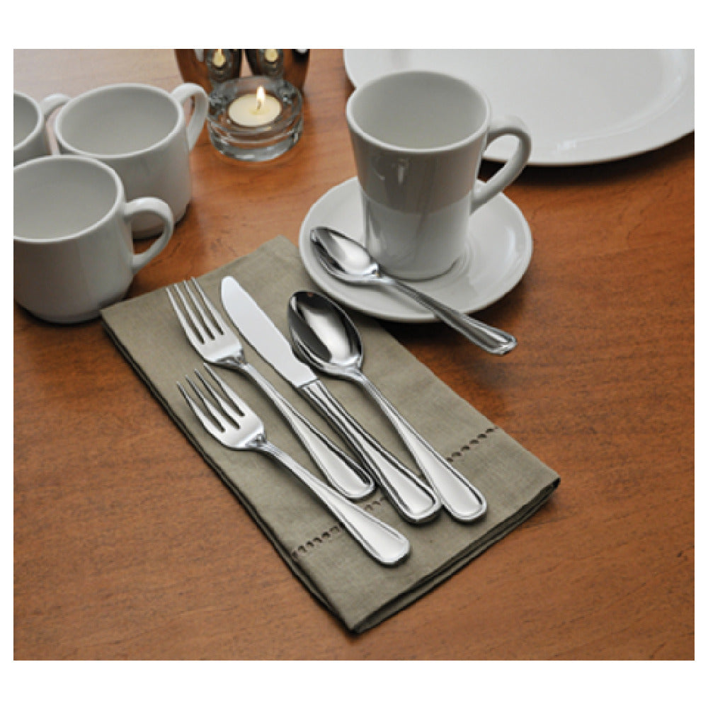 The 1880 Hospitality B914STSF Oneida® Teaspoon is a premium utensil measuring 6-1/4 inches, distinguished by its elegantly curved border along the handle. Crafted from high-quality 18/0 stainless steel, this teaspoon combines durability with sleek aesthetics, making it a staple in any dining setting. The 18/0 stainless steel composition ensures rust resistance and long-lasting performance, catering to the demands of high-traffic environments such as restaurants, hotels, and catering services. The New Rim II design further enhances its contemporary appeal, making it suitable for upscale dining experiences as well as everyday use in casual eateries. Its ergonomic design offers comfort and ease of use, while the stylish curved border adds a touch of sophistication, appealing to both traditional and modern tastes. This teaspoon is part of a larger collection, allowing for cohesive table settings that maintain a consistent aesthetic. Its versatile design makes it a practical choice for establishments looking to balance style with functionality. The 1880 Hospitality B914STSF Oneida® Teaspoon is a reliable and elegant addition to any tableware collection, meeting the diverse needs of the hospitality industry with both grace and resilience. Whether for formal dining or casual settings, this teaspoon embodies quality and timeless design.