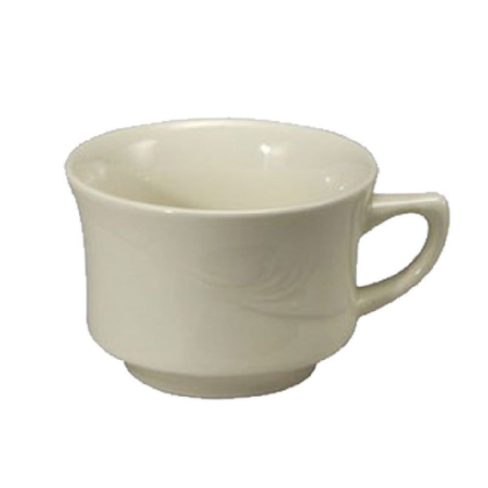 The 1880 Hospitality F1040000520 Oneida® Lotus Cup is a distinguished piece of dining ware, meticulously crafted to enhance the dining experience. With a capacity of 7-1/2 ounces and a precise diameter of 3-5/8 inches, this round cup is designed to cater to a variety of beverage needs, from elegant tea servings to sophisticated coffee presentations. The cup's embossed pattern and crafted handle elevate its aesthetic appeal, offering a touch of sophistication to any table setting. The twice-fired construction process ensures enhanced durability and longevity, making it a reliable choice for both casual and formal dining environments. Presented in a cream white color, the Lotus Cup seamlessly complements a wide range of tableware collections, fitting effortlessly into diverse dining contexts. As part of the Espree collection, this cup embodies a timeless elegance, making it suitable for upscale restaurants, boutique hotels, and catering services looking to impress their guests with understated luxury. Its combination of practical design and refined beauty makes the 1880 Hospitality F1040000520 Oneida® Lotus Cup an exceptional choice for food service professionals who value quality and style in their serveware.