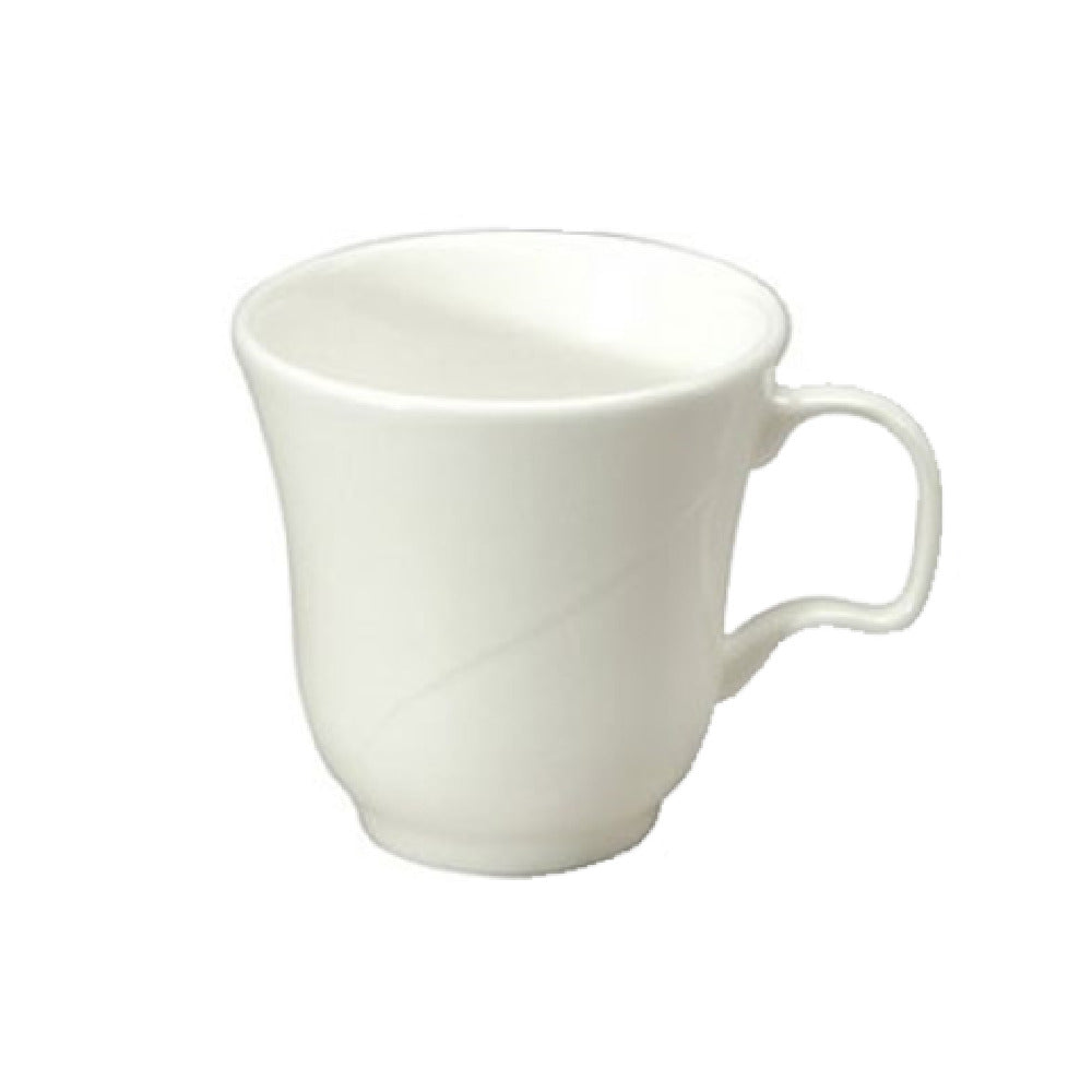 The 1880 Hospitality F1100000510 Oneida® Cup is an expertly crafted piece of drinkware that combines style and durability, making it an asset to any setting looking to impress. With a capacity of 8-1/2 oz. and a height of 3-1/2", this cup offers a balanced volume and stature suitable for serving a variety of beverages. Its tall, round design is complemented by a handle, providing both aesthetic appeal and functional convenience for individuals and professionals alike. A distinctive feature of this cup is its asymmetric embossed design, which adds a subtle elegance to the classic white bone china material. Known for its strength, bone china ensures long-lasting use while maintaining a refined appearance. The cup is part of the Eclipse collection and features a reassuring 3-year no chip warranty, highlighting its resilience and suitability for both high-turnover hospitality environments and luxury dining establishments. This product stands as a testament to quality and sophistication, designed to meet the diverse demands of restaurants, cafes, hotels, and more, seeking to deliver an elevated dining experience.