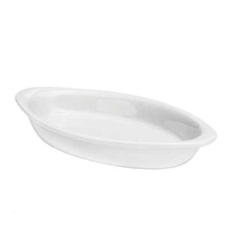 The 1880 Hospitality F1400000646 Oneida® Rarebit 9 Oz. 10-1/2" is a distinctively crafted piece of dinnerware designed to meet the needs of various segments within the hospitality industry. This product features an oval shape and is constructed from vitrified high alumina porcelain, which ensures durability and resistance to chipping. The bone white color offers a classic and elegant appearance, making it suitable for upscale dining environments. Measuring at a length of 10-1/2 inches, this rarebit dish boasts a generous capacity of 9 ounces, making it ideal for serving a variety of dishes. The Tundra™ finish adds a touch of sophistication while enhancing its aesthetic appeal. This product's unique combination of size, material, and design makes it an excellent choice for restaurants, hotels, and catering services that prioritize both functionality and style. The Oneida® Rarebit is specifically designed to withstand the rigors of commercial use, providing a reliable option for any professional kitchen looking to enhance their presentation. Its versatility and timeless design make it an essential addition to any culinary establishment seeking to deliver exceptional dining experiences.