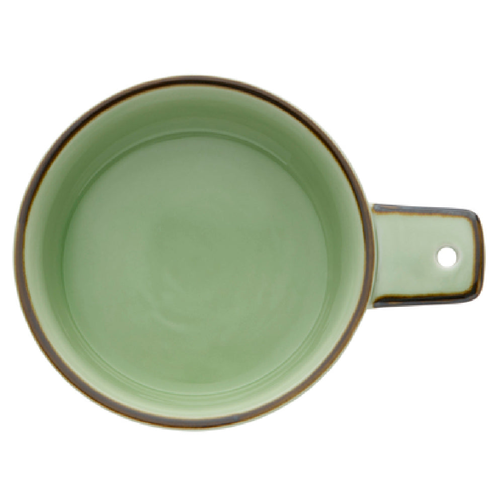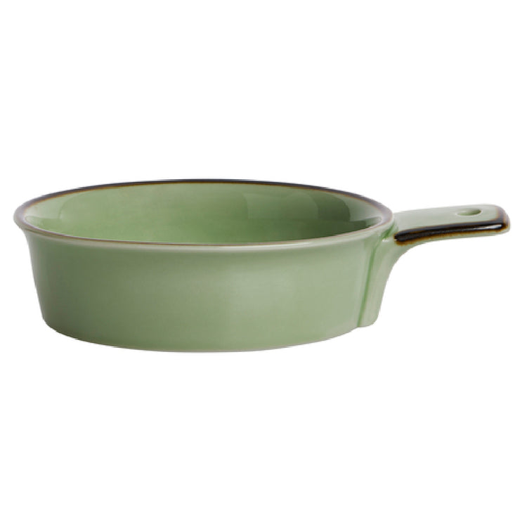 The 1880 Hospitality F1463067108 Oneida® Tapas Dish is a round porcelain dish with a 12 oz. capacity, featuring a 5" diameter and an integrated handle for ease of use. This tapas dish is distinguished by its celadon (light green) color glaze, presenting a stylish addition to any tabletop presentation. Its Studio Pottery design emphasizes both aesthetic appeal and functional durability, making it a versatile choice for various dining settings. The Oneida® Tapas Dish is particularly suited for restaurants, hotels, and catering services that aim to enhance their dining experience with elegant yet practical serveware. Its durable porcelain construction ensures longevity and resistance to chipping, providing reliability for long-term use in busy hospitality environments. The unique combination of its size, color, and design makes it an ideal choice for serving small, shared plates or appetizers, appealing to diverse market segments within the food service industry. Whether employed in high-end dining or casual settings, the 1880 Hospitality Oneida® Tapas Dish meets the demands of different service styles by blending visual appeal with functionality.