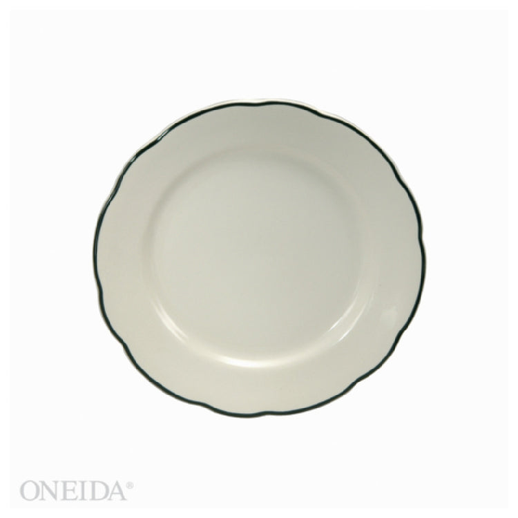 The 1880 Hospitality F1560018144 Oneida® Plate is a round dining essential with a diameter of 9-5/8 inches, meticulously designed for both elegance and functionality. This plate showcases a wide rim and a reinforced scalloped edge, adding a touch of sophistication to any table setting. Constructed from high-quality china, it is twice fired for enhanced durability, ensuring its longevity in both microwave and oven environments. Available in a cream white finish, this plate is part of the Buffalo and Caprice™ collection, also featuring a Manhattan Black variant, offering versatile style options for various dining establishments. Its robust construction and elegant design make it suitable for a range of industries, from upscale restaurants to casual dining and hospitality services. The 1880 Hospitality Oneida® Plate is an ideal choice for establishments seeking a blend of aesthetic appeal and practical functionality. Whether enhancing the dining experience in a hotel, restaurant, or catering service, this plate delivers on quality and style.