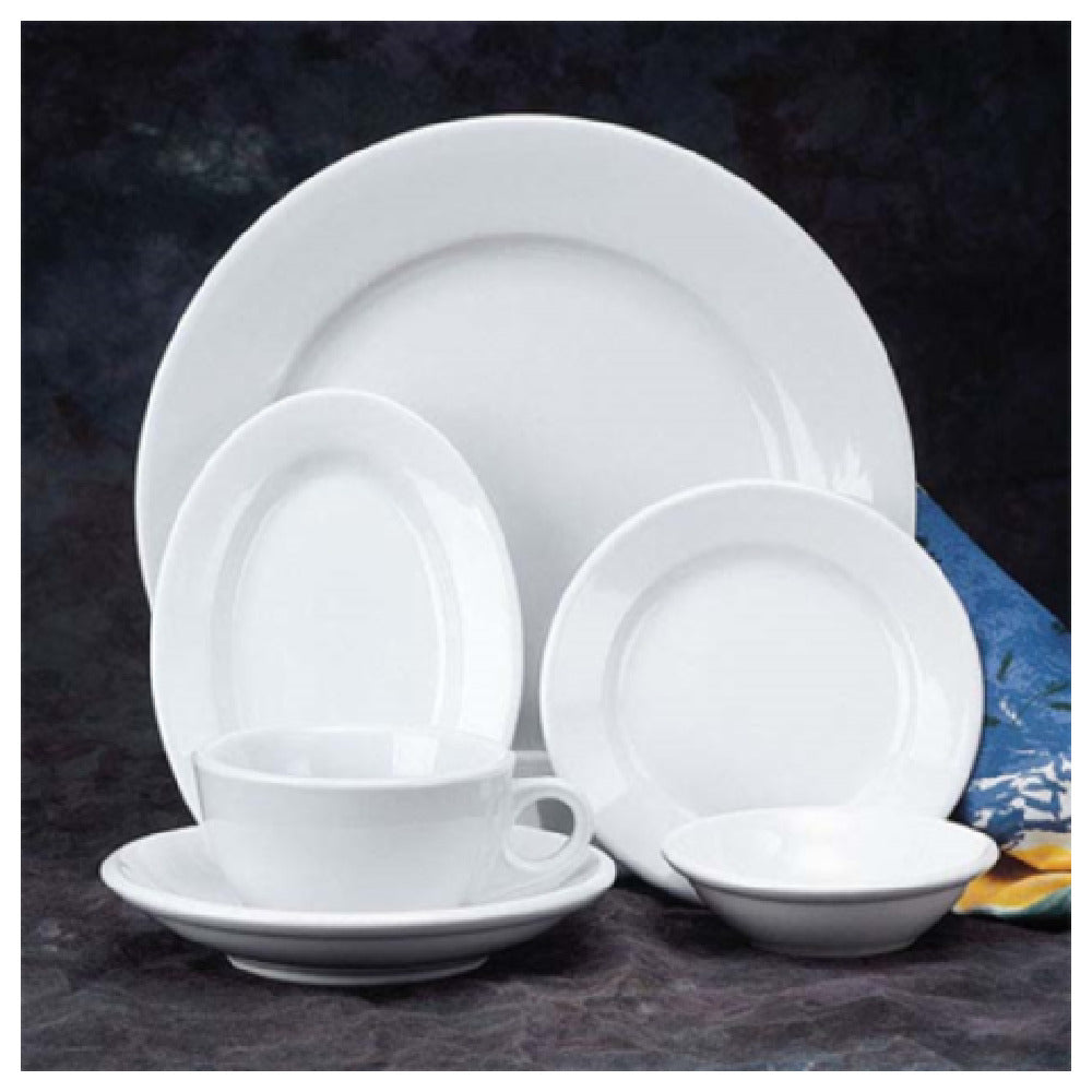 The 1880 Hospitality F8010000323 Oneida® Platter 7" X 4-5/8" Oval is a meticulously designed dining accessory that seamlessly blends elegance and functionality. Crafted from bright white porcelain, this platter is not only aesthetically pleasing but also durable, making it suitable for a variety of dining environments. Its oval shape measures 7 inches by 4-5/8 inches, providing ample space for serving a range of culinary delights, from appetizers to desserts. The platter features a rolled edge and a medium rim, enhancing its structural integrity and aesthetic appeal while ensuring ease of handling. It is microwave and dishwasher safe, offering convenience for both preparation and cleaning in fast-paced dining settings. The scratch-resistant glaze adds an extra layer of protection, ensuring the platter maintains its pristine appearance even with frequent use. Its compatibility with Buffalo White Ware emphasizes its adaptability for professional settings, accommodating a broad spectrum of presentation styles. Additionally, the platter comes with a one-year no-chip warranty, underscoring its quality and durability. This product is a versatile choice for hospitality professionals seeking reliable, high-quality serveware that enhances the dining experience through its combination of style, practicality, and resilience.