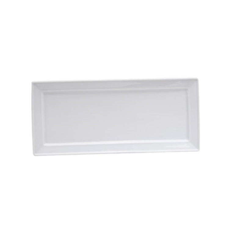 The 1880 Hospitality F8010000381S Oneida® Platter - 14-1/4" x 6-1/4" rectangular - is a meticulously crafted piece of serveware designed to cater to the demands of modern dining environments. This platter features a flat, rolled edge with a medium rim, providing a versatile surface for presenting a variety of culinary creations. Constructed from porcelain, it boasts a bright white finish that adds a touch of elegance to any table setting. Its scratch-resistant glaze ensures long-lasting durability, making it suitable for both commercial and residential use. The platter is both microwave and dishwasher safe, offering convenience and ease of maintenance. This piece is part of the Buffalo White Ware collection and comes with a 1-year no-chip warranty, underscoring its quality and resilience. The 1880 Hospitality Oneida® Platter is ideal for restaurants, hotels, or any dining establishment looking for reliable and stylish serveware that combines functionality with aesthetic appeal.
