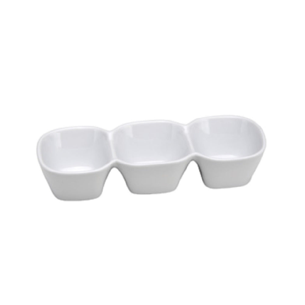 The 1880 Hospitality F8010000955 Oneida® Compartment Dish Bowl, 9-1/2" x 3-3/8", is a versatile and practical choice for food service establishments prioritizing durability and functionality. This rectangular dish bowl features three compartments, providing organized serving options for various culinary presentations. The bowl's rolled edge adds a touch of sophistication while enhancing structural integrity, ensuring long-lasting use. Made from bright white porcelain, the dish offers a classic and timeless aesthetic, complementing diverse table settings. Its scratch-resistant glaze further enhances durability, making it a reliable selection for high-traffic environments. Designed for modern convenience, this bowl is both microwave and dishwasher safe, streamlining kitchen operations and maintaining efficiency. An added advantage is the one-year no-chip warranty, reflecting confidence in the product's quality and resilience. As part of the Buffalo White Ware collection, this compartment dish bowl meets industry standards for professional dining experiences, making it a valuable asset in restaurants, hotels, and catering services.