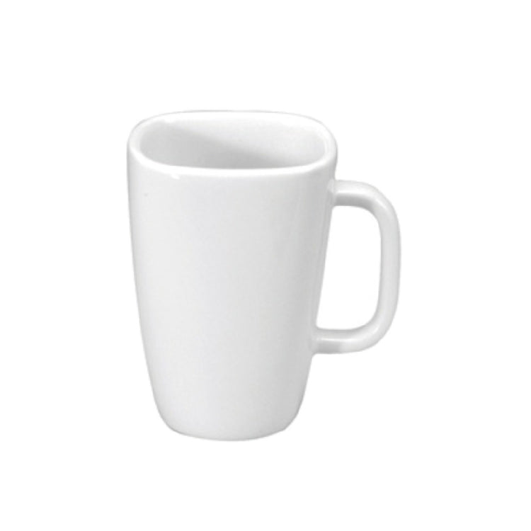 The 1880 Hospitality F9000000560S Oneida® Mug 10 Oz. 4-1/2" is a high-quality porcelain mug designed for durability and elegance, perfect for various hospitality settings. With a capacity of 10 ounces and a height of 4-1/2 inches, this square-shaped mug features a cream white finish that complements any table setting. Its scratch and mark resistant properties ensure it maintains its pristine appearance even under frequent use. This mug is both microwave and dishwasher safe, offering convenience and ease of maintenance. Manufactured by Buffalo in their esteemed White Ware line, it boasts a 1-year no-chip warranty, providing assurance of its long-lasting quality. The Oneida® Mug is an excellent choice for hotels, restaurants, and cafes seeking a reliable and stylish addition to their drinkware collection. Its thoughtful design and robust construction make it a versatile option for different segment markets, from fine dining establishments to casual breakfast spots, where aesthetics and practicality are equally valued.