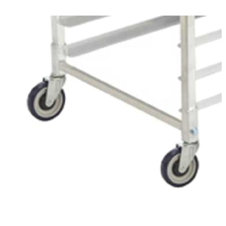 The 1880 Hospitality FBRCST5B Focus Foodservice Caster 5" Swivel Stem With Brake is an essential replacement component designed specifically for aluminum bakery racks. This caster features a 5-inch diameter, ensuring smooth and efficient mobility across various surfaces in a bustling kitchen environment. It incorporates a swivel stem design, providing excellent maneuverability and flexibility, essential for navigating tight spaces. Equipped with a reliable brake system, this caster allows for secure positioning, ensuring safety and stability during operations. The non-marking polyurethane construction of the caster is crucial for maintaining a clean and presentable kitchen floor, as it prevents unsightly marks and damage. The caster's black color adds a sleek and professional appearance, suitable for high-standard foodservice settings. This product caters to different segments within the foodservice industry, providing a practical solution for establishments seeking durable and reliable mobility solutions for their bakery equipment. Whether in a large-scale commercial bakery or a small artisanal setup, the 1880 Hospitality FBRCST5B Focus Foodservice Caster stands out as a versatile and dependable choice, enhancing operational efficiency by ensuring smooth transport of bakery racks while safeguarding the integrity of kitchen surfaces.