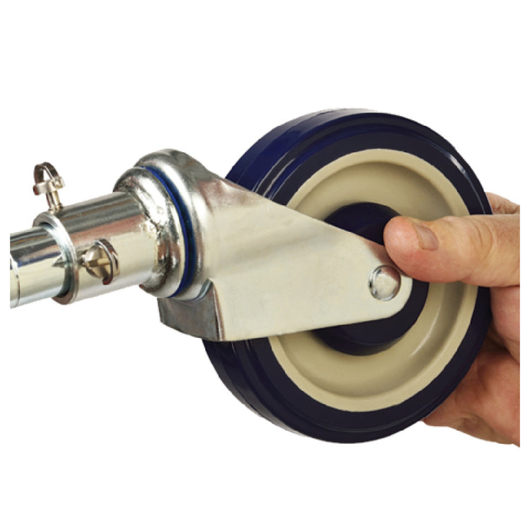 - Includes two casters with brakes for stability
