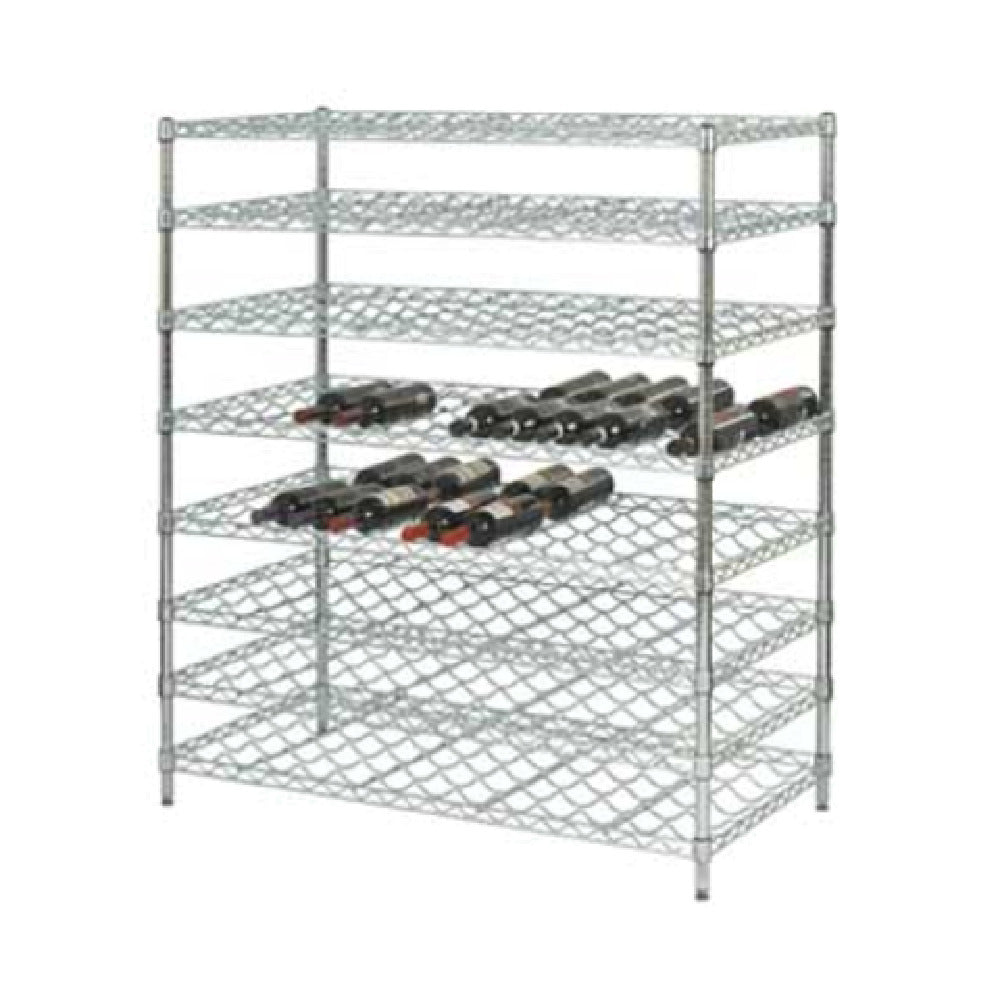 The 1880 Hospitality FDWSK3654CH Focus Foodservice Double Cradle Wire Wine Shelving Kit is a meticulously designed storage solution tailored for wine connoisseurs and businesses within the hospitality industry. With dimensions of 36 inches in width and 24 inches in depth for each of the eight shelves, this kit offers ample space for organizing and showcasing an impressive collection. Its capacity to hold 144 standard 750 ml wine bottles provides an efficient storage solution for dry environments. The kit includes four 54-inch stationary posts, ensuring stability and durability. Crafted with a chromate finish, this shelving kit not only adds an aesthetic touch but also ensures long-lasting resilience against wear and tear. This product is NSF certified, highlighting its adherence to the highest standards of safety and quality in the foodservice industry. Ideal for wine cellars, restaurant storage areas, or retail wine displays, the 1880 Hospitality Double Cradle Wire Wine Shelving Kit is engineered to meet the storage needs of various segments within the hospitality sector, from fine dining establishments to casual eateries, offering an effective and reliable solution to maintain an organized and visually appealing wine display.