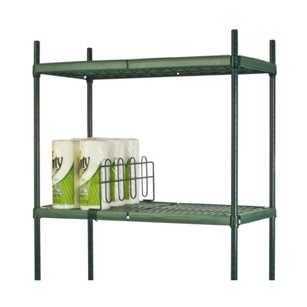 The 1880 Hospitality FSD188FPS Focus Foodservice Shelf Divider is a versatile storage solution designed to enhance organization in both wet and dry storage environments. Measuring 18 inches in depth and 8 inches in height, this shelf divider provides an efficient way to segment storage areas for better space utilization. Its green epoxy coating not only offers a distinctive appearance but also ensures durability and resistance to moisture, making it suitable for various storage conditions. This shelf divider is NSF certified, signifying its adherence to high standards of quality and safety in foodservice applications. The 1880 Hospitality FSD188FPS is an ideal choice for professional kitchens, catering businesses, and food storage facilities that require reliable and hygienic storage solutions. Its robust design and practical size make it an indispensable tool for enhancing storage efficiency and maintaining organized inventory in foodservice environments.