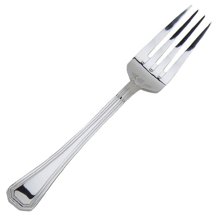 The 1880 Hospitality IM-805 Update International™ Dinner Fork, with an overall length of 7-1/4 inches, is a meticulously crafted piece of dining cutlery designed for both durability and elegance. This dinner fork is an extra heavy weight utensil, ensuring a substantial feel that enhances the dining experience. Constructed from 18/8 stainless steel, it guarantees superior resistance to corrosion and rust, providing longevity even with frequent use. The fork's 2.8 mm thick structure adds robustness, making it a reliable choice for both everyday dining and special occasions. With a mirror polish finish, it exudes a sophisticated shine that complements any table setting, whether in high-end restaurants or at home. The Imperial design of this fork not only offers a classic aesthetic appeal but also aligns with professional culinary standards, making it a preferred choice for hospitality sectors seeking quality and style. The 1880 Hospitality IM-805 stands out in the market for its combination of sturdiness and elegance, meeting the varied needs of the foodservice industry, from upscale eateries to catering services, all while delivering a touch of refinement to the dining experience.