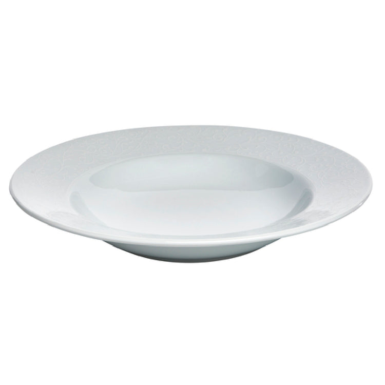 The 1880 Hospitality L5803050790 Oneida® Pasta Bowl is a meticulously crafted dining essential, ideal for various dining environments. With a generous capacity of 24-1/4 oz., this bowl is perfectly suited for serving substantial portions of pasta, ensuring each serving is as delightful as intended. Its 12-1/4" diameter provides ample space, enhancing the presentation of your culinary creations while accommodating a variety of pasta dishes. The round shape and wide rim design contribute to a sophisticated dining experience, making it a versatile choice for both casual and fine dining settings. This pasta bowl features an embossed paisley design, adding a touch of elegance and artistry to your tableware collection. Crafted from porcelain, it boasts a bright white glaze that complements any table setting, delivering both aesthetic appeal and durability. Manufactured by Luzerne, the Ivy Flourish design further enhances its visual appeal. This special order item exemplifies quality and style, meeting the unique demands of diverse markets within the hospitality industry. Its combination of size, design, and material makes the 1880 Hospitality L5803050790 Oneida® Pasta Bowl a valuable addition to dining establishments looking to elevate their service with elegant and functional dinnerware. Contact us for more details on this exquisite product.