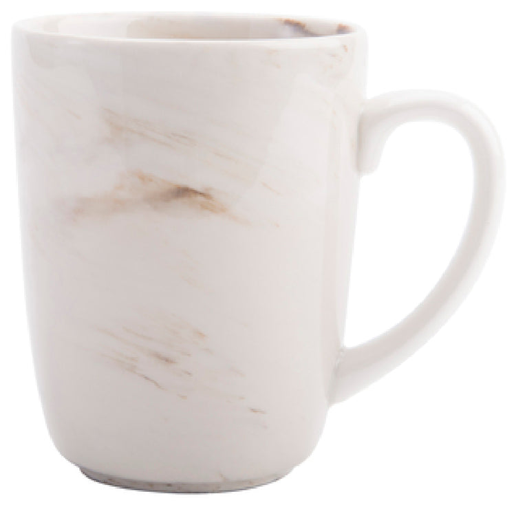 The 1880 Hospitality L6200000560 Oneida® Mug is a meticulously crafted porcelain mug designed to enhance any dining setting with its aesthetic appeal and practical features. With a volume capacity of 10-1/4 oz. and a diameter of 4-1/2", this round mug is ideal for serving hot beverages in various hospitality environments. A standout feature of the Oneida® Mug is its commitment to safety and durability; it is 100% lead and cadmium-free, ensuring safe use over time without the risk of harmful chemical exposure. The mug's chip-resistant property makes it a reliable choice for high-traffic settings where durability is essential. Its dishwasher and microwave-safe design adds convenience for both users and service providers, allowing for easy cleaning and reheating. The porcelain construction, complemented by a glazed finish, provides a sleek and elegant appearance suitable for upscale dining venues, while the Luzerne Marble design adds a touch of sophistication. This mug is a versatile option for restaurants, cafes, and hotels aiming to deliver a refined drinking experience with an emphasis on safety, longevity, and style. Its combination of aesthetic charm and practical features makes it an excellent choice for diverse market segments within the hospitality industry.