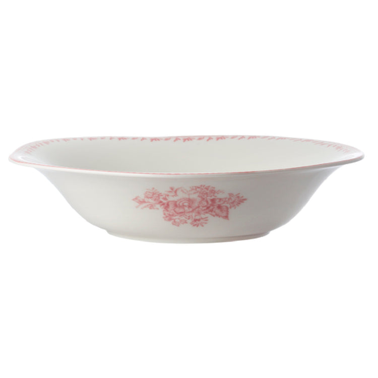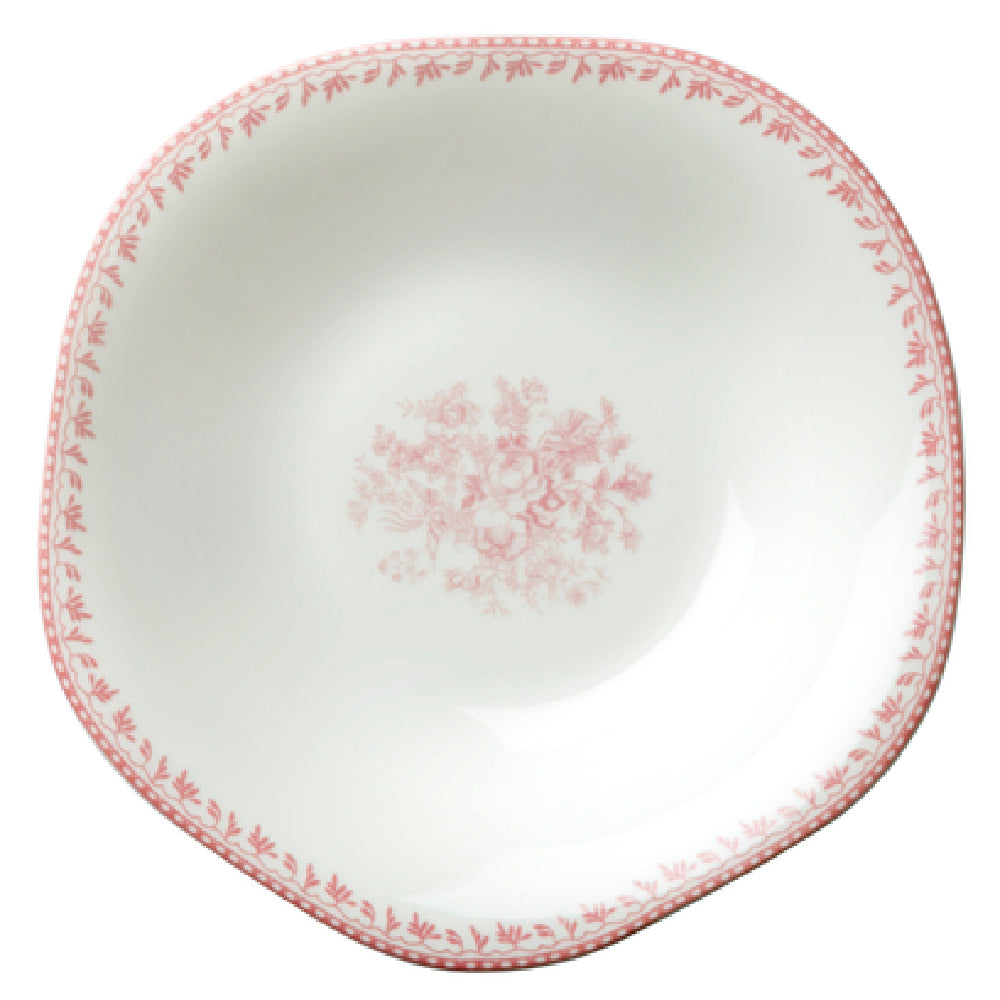The 1880 Hospitality L6703052761 Oneida® Bowl 15 Oz. 8-1/4" Dia. is a distinctive piece of tableware that blends practicality with aesthetic appeal, catering to diverse market segments within the hospitality industry. With a capacity of 15 ounces, this irregular round bowl is perfectly sized for serving individual portions in a dining setting. Its 8-1/4" diameter makes it versatile for various culinary presentations, from soups to desserts. The bowl features a pink floral design that adds a touch of elegance and sophistication, appealing to establishments looking to infuse a warm and inviting ambiance. Crafted from high-quality porcelain, this bowl embodies durability and style, ideal for both casual and formal dining environments. The warm white glazed finish not only enhances its visual appeal but also provides a layer of protection against scratches and stains, ensuring longevity in high-traffic hospitality settings. As part of the Luzerne Lancaster Garden collection, this bowl offers a unique value proposition for establishments seeking to elevate their table settings with a product that combines traditional craftsmanship with modern design. Whether used in restaurants, hotels, or catering services, the 1880 Hospitality Oneida® Bowl stands out as a reliable and attractive choice for food service professionals.