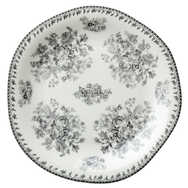 The 1880 Hospitality L6703068132 Oneida® Plate 8" Dia. Irregular Round is a meticulously crafted piece of tableware that blends elegance with functionality, making it an ideal choice for a variety of dining settings. This plate features an 8-inch diameter with an irregular round shape, adding a touch of modern sophistication to any table arrangement. Adorned with a grey floral design, it presents a warm white background that complements a wide range of dining decors. The plate is made from high-quality glazed porcelain, a material known for its durability and resistance to chipping, ensuring longevity and sustained visual appeal. Manufactured by Luzerne, the design is part of the Lancaster Garden line, which emphasizes natural beauty and intricate detailing. This product is versatile for use in both hospitality and home settings, catering to the needs of restaurants, hotels, and private dining occasions. Its unique design and robust construction make it a valuable addition to any tableware collection, offering a blend of aesthetic appeal and practical utility.
