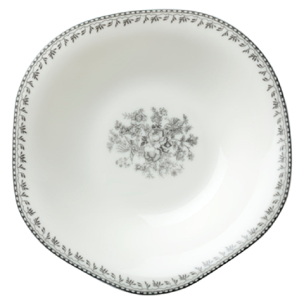 The 1880 Hospitality L6703068761 Oneida® Bowl is a uniquely designed piece with a 15 oz. capacity, measuring 8-1/4 inches in diameter, which makes it ideal for various dining settings. Crafted from high-quality porcelain, this bowl is part of the Luzerne Lancaster Garden collection and features an irregular round shape that adds a distinctive touch to any table setting. The warm white glaze serves as a perfect background to the subtle grey floral design, offering a sophisticated aesthetic that enhances presentation. The bowl's construction ensures durability and long-lasting use in both casual and formal dining environments, appealing to hospitality venues such as hotels, restaurants, and catering services. The combination of its size and design makes this bowl versatile for serving a variety of dishes, from soups to salads or desserts. Its unique shape and decorative pattern provide a blend of elegance and functionality, catering to the needs of different market segments within the food service industry. This piece is not only a testament to quality craftsmanship but also a practical solution for establishments looking to elevate their dining experience with refined and stylish tableware.