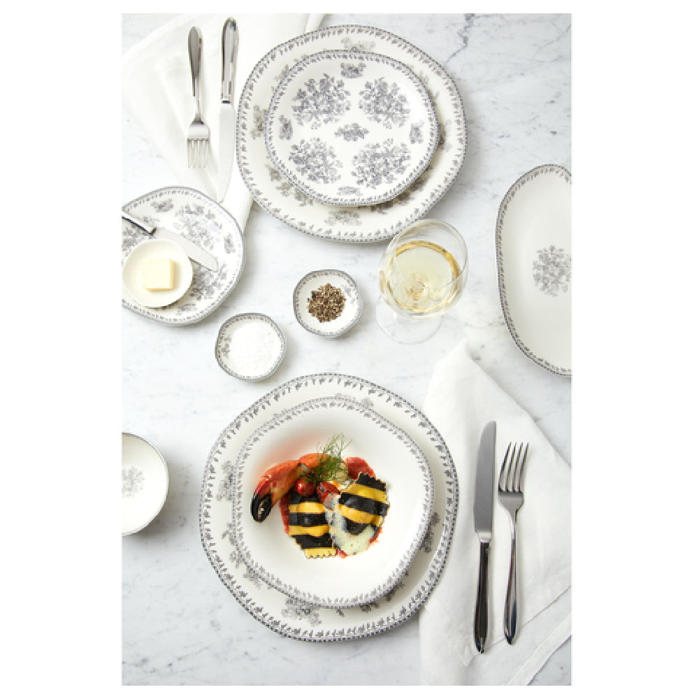 - Elegant grey floral design enhances table settings