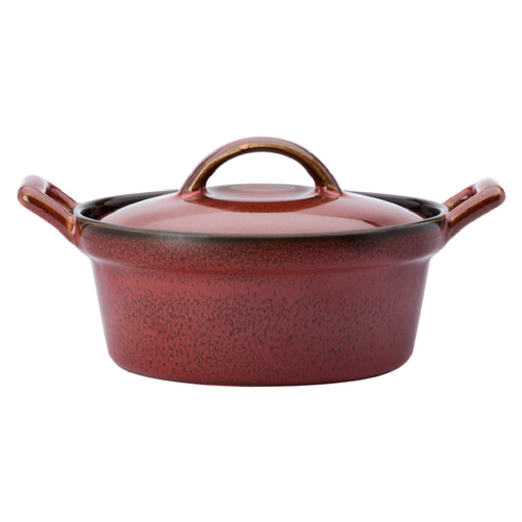 The 1880 Hospitality L6753074675 Oneida® Casserole 8 Oz. 6-3/4" Dia. is a meticulously crafted piece of kitchenware, designed to cater to the diverse needs of both professional chefs and home cooks. This round casserole dish, with a capacity of 8 ounces, is perfectly suited for individual servings or side dishes, offering versatility in meal preparation and presentation. Measuring 6-3/4 inches in diameter, it provides ample space for a variety of culinary creations. The design features a two-tone glaze, which not only enhances its aesthetic appeal but also contributes to its durability and resilience in everyday use. Made from high-quality porcelain, the casserole is both sturdy and elegant, with a crimson finish that adds a rustic charm to any table setting. The inclusion of a lid and handles ensures convenient handling and serving, making it an ideal choice for both casual dining and formal occasions. Whether used in a bustling restaurant or a cozy home kitchen, the 1880 Hospitality L6753074675 Oneida® Casserole stands out as a practical and stylish addition to any cookware collection, emphasizing its unique blend of functionality and design excellence.