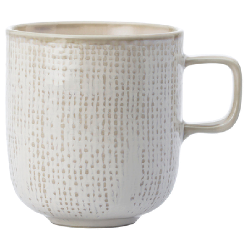 The 1880 Hospitality L6800000560 Oneida® Mug 9 Oz. 3-1/2" is a meticulously crafted porcelain mug that combines aesthetic appeal with practical functionality, making it a standout choice for diverse markets in the hospitality industry. With a capacity of 9 ounces and a height of 3-1/2 inches, this mug is perfectly sized for serving a variety of beverages, from rich coffees to soothing teas. The mug features a woven surface design complemented by a reactive glaze, providing a unique and sophisticated visual appeal. Its tea-stained edge adds a touch of elegance, distinguishing it from standard ceramic mugs. Made from high-quality porcelain, this mug boasts a white body that enhances its durability and resistance to chipping. Part of the Luzerne collection, the mug embodies the Knit pattern, offering a textured and tactile experience. Its ergonomic handle ensures a comfortable grip, making it an ideal choice for both casual dining settings and upscale hospitality environments. This Oneida® Mug seamlessly blends functionality with style, making it a versatile addition to any table setting, whether in bustling cafes, fine dining restaurants, or cozy home kitchens. Its thoughtful design and durable construction cater to the specific needs of the hospitality industry.