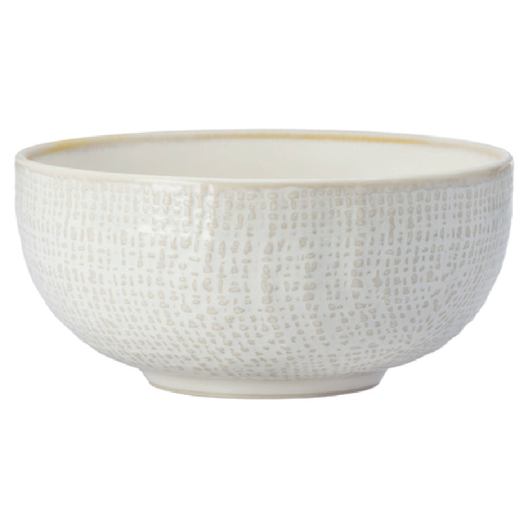 The 1880 Hospitality L6800000758 Oneida® Bowl 11 Oz. 5" Dia. is a meticulously crafted piece of tableware that combines aesthetic appeal with functional design, ideal for the hospitality industry. This bowl, with its 11-ounce capacity and 5-inch diameter, caters to diverse dining settings, from casual to fine dining establishments. Its round shape and woven surface add a distinctive visual texture that enhances the dining experience. The reactive glaze finish, accompanied by a tea-stained edge, creates a unique, artisanal look, making each piece one-of-a-kind. Constructed from high-quality porcelain, the bowl features a white body that provides a classic and versatile backdrop for presenting various culinary creations. Originating from Luzerne under the Knit design series, this bowl embodies a blend of tradition and innovation, ensuring durability and elegance. Its design is suitable for both modern and traditional dining settings, offering a stylish solution for restaurants, hotels, and other hospitality environments seeking to elevate their presentation standards. The Oneida® Bowl is a testament to refined craftsmanship, providing a reliable and visually appealing option for professionals in the culinary industry who value both form and function in their service ware.