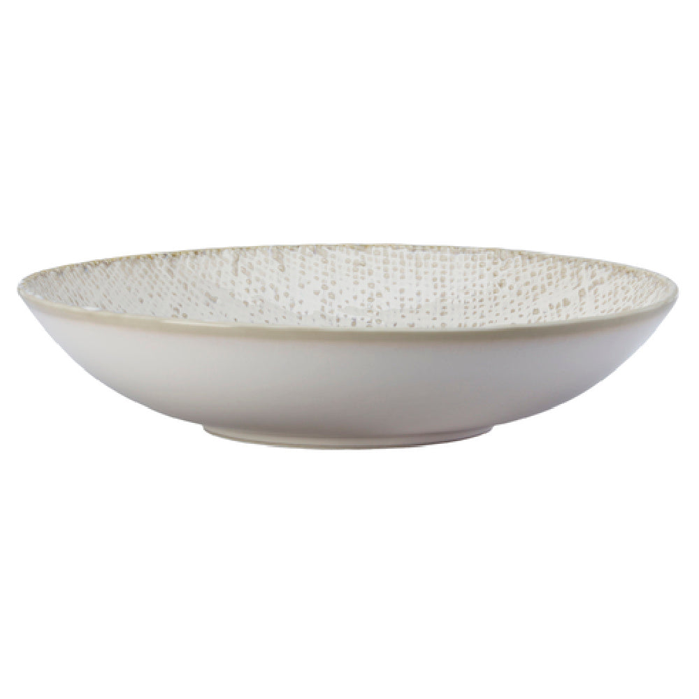 The 1880 Hospitality L6800000762 Oneida® Bowl 14 Oz. 8" Dia. is a meticulously crafted piece of serveware designed for a variety of dining environments. This bowl features a unique round, deep coupe shape, ideal for presenting soups, salads, and more in an elegant fashion. With an 8-inch diameter and a capacity of 14 ounces, it strikes the perfect balance between portion control and presentation. Its woven surface, enhanced by a reactive glaze, gives it a distinctive texture, while the tea-stained edge adds a touch of artisanal charm. Made from high-quality porcelain, the bowl boasts a durable white body that complements any table setting. Part of Luzerne's Knit collection, it embodies a blend of innovation and style. This makes it a versatile choice for upscale restaurants, cafes, and hospitality venues seeking to enhance their tableware offerings with a touch of sophistication. The bowl's unique design and robust construction make it suitable for both formal dining and casual settings, bridging the gap between elegance and everyday functionality.