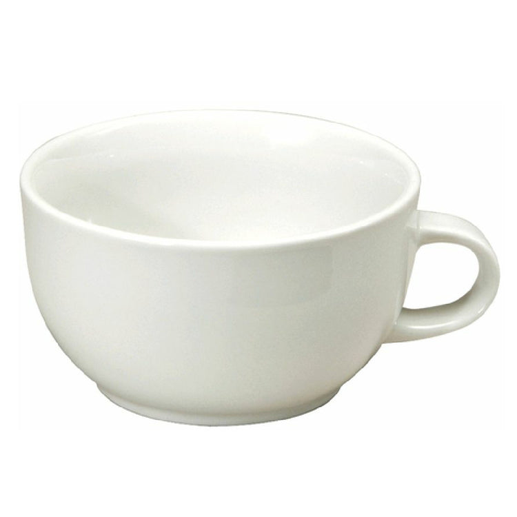 The 1880 Hospitality R4130000524 Oneida® Jumbo Cup 12 Oz. Handled is a versatile and durable porcelain cup designed for various hospitality settings. With a generous capacity of 12 ounces, this cup is ideal for serving large portions of coffee, tea, or any beverage of choice, making it suitable for cafes, restaurants, and hotels catering to customers who appreciate a substantial serving. The cup is crafted with a rolled edge, enhancing its durability and providing a comfortable grip for users. One of its standout features is its microwave and dishwasher-safe construction, ensuring ease of use and efficient cleaning in busy environments. The scratch-resistant glaze maintains its bright white appearance, ensuring a pristine look even with frequent use. This Jumbo Cup comes with a 1-year no-chip warranty, offering peace of mind and underscoring its quality and resilience in high-traffic settings. The handled design further adds to its practicality, allowing for easy handling and service. This product is tailored for the hospitality industry, where durability and aesthetic appeal are essential, making it a reliable choice for establishments aiming to deliver exceptional service and quality to their patrons.