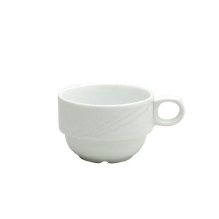 The 1880 Hospitality R4510000520 Oneida® Cup 7-1/2 Oz. 4-7/8" is a meticulously designed piece of drinkware, perfect for a range of hospitality settings. This cup features a capacity of 7-1/2 ounces, making it suitable for serving a variety of beverages. With a diameter of 4-7/8", it offers a comfortable size that balances both style and practicality. The cup's low, round shape, coupled with a convenient handle, ensures ease of use and a pleasant drinking experience. Its embossed surface adds a touch of elegance, enhancing its visual appeal. Made from high-quality porcelain, this cup is not only durable but also presents a bright white finish that complements any table setting. The reference to "Buffalo, Arcadia" in its description highlights its association with distinguished design lines in the hospitality industry. Whether used in hotels, restaurants, or catering events, the 1880 Hospitality R4510000520 Oneida® Cup serves as a versatile addition, offering both aesthetic charm and functional utility to any professional dining environment.