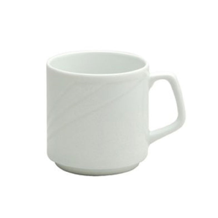 The 1880 Hospitality R4510000567 Oneida® Mug 10 Oz. 4-5/8"H is a meticulously crafted porcelain mug, ideal for various hospitality settings. With a capacity of 10 ounces, this mug is perfectly sized for serving a range of beverages. Its 4-5/8-inch height and round shape offer a classic and functional design that is both visually appealing and practical. The stackable feature of the mug allows for efficient storage, making it an excellent choice for environments where space optimization is crucial. The mug is equipped with a sturdy handle, ensuring a comfortable grip for users. Its embossed surface adds a touch of elegance and sophistication, enhancing its aesthetic appeal. Made from bright white porcelain, the mug's clean and crisp appearance is versatile, seamlessly fitting into any dining decor. The Buffalo and Arcadia™ collection elements highlight its connection to quality and tradition. This mug serves as a valuable addition to cafes, restaurants, and hotels seeking durable and stylish tableware solutions. Combining durability with a timeless design, the 1880 Hospitality R4510000567 Oneida® Mug is a superb choice for those looking to enhance their serving ware with a product that balances form and function.