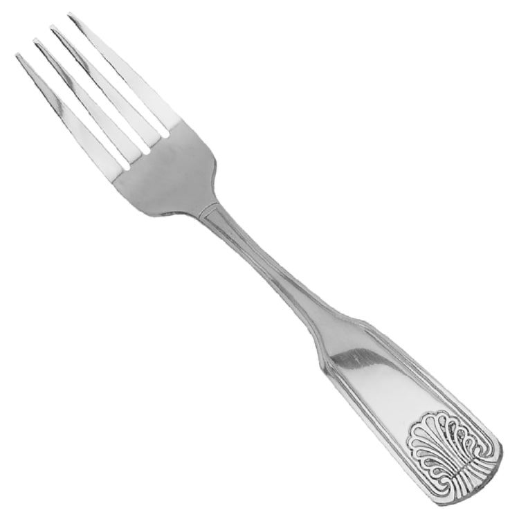 The 1880 Hospitality SH-505-N Update International™ Dinner Fork 7-5/8" Extra Heavy Weight is a premium flatware option designed to elevate dining experiences across various market segments, including restaurants, catering services, and hospitality venues. This dinner fork is constructed from 18/0 stainless steel, ensuring durability and resistance to bending, making it a practical choice for high-traffic environments. The fork's extra heavy weight offers a substantial feel, enhancing the dining experience by providing a sense of quality and luxury. Its 7-5/8" length is proportionate for comfortable use, catering to a range of dining settings from casual to fine dining. The mirror polish finish not only adds an elegant shine but also makes it easy to clean and maintain, preserving its pristine appearance over time. Known as the "Shelley" design, this fork complements a variety of table settings, making it a versatile choice for different dining atmospheres. Whether used in everyday restaurant use or for special events, the 1880 Hospitality SH-505-N fork combines functional strength with aesthetic appeal, meeting the demands of professional food service industries while enhancing the overall dining experience for guests. This product represents a reliable and stylish addition to any collection of dining utensils.
