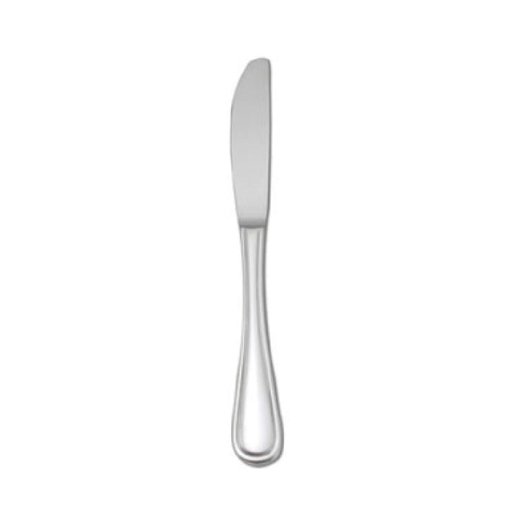 The 1880 Hospitality T015KDEF Oneida® Dessert Knife 8-1/4" 1-piece is a refined piece of flatware crafted with precision and elegance, making it an essential addition to any dining setting. This dessert knife measures 8-1/4 inches in length and is constructed from premium 18/10 stainless steel, ensuring durability and resistance to corrosion, which is ideal for both residential and commercial applications. The handle features a sleek, curved border design that enhances its aesthetic appeal, providing both comfort and sophistication in grip. The New Rim design adds a modern touch to this traditional piece, making it versatile for various dining environments, from upscale restaurants to luxurious hotels. This single-piece construction ensures a seamless and sturdy build, which is particularly valued in high-volume hospitality settings where reliability and long-lasting quality are paramount. The high-grade stainless steel offers a striking finish that maintains its luster over time, presenting a polished look that complements a wide array of table settings. Perfectly suited for the hospitality industry, the 1880 Hospitality T015KDEF Oneida® Dessert Knife stands out as a symbol of quality and style, catering to the discerning tastes of clients and guests alike.