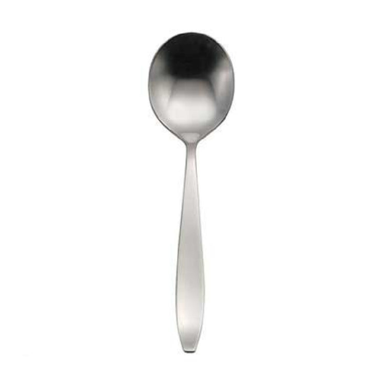 The 1880 Hospitality T301SBLF Oneida® Bouillon Spoon 6-3/4" Tapered Handle is crafted with precision for a high-quality dining experience. This spoon, measuring 6-3/4 inches, features a sleek tapered handle that enhances both comfort and style. Constructed from 18/10 stainless steel, it ensures superior durability and resistance to corrosion, making it a long-lasting choice for any establishment. The brushed finish adds an elegant touch, making it suitable for upscale dining environments. Known as the Sestina™ collection, this bouillon spoon is designed to complement a variety of table settings, offering versatility for restaurants, hotels, and catering services. Its construction guarantees that it withstands frequent use in busy settings while maintaining its aesthetic appeal. This product's unique value lies in its blend of durability, style, and functionality, making it an ideal choice for diverse markets in the hospitality industry, from fine dining restaurants to high-end banquet halls. Its refined design and sturdy build make it a practical yet sophisticated addition to any cutlery collection, providing both guests and hosts with an exceptional dining tool.