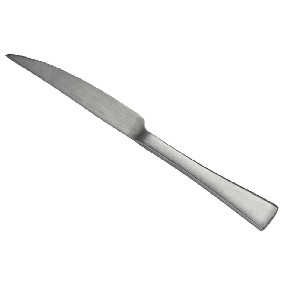 The 1880 Hospitality T576KSSF Oneida® Steak Knife 9-3/8" Solid is an impeccable blend of functionality and elegance, designed to meet the discerning standards of culinary professionals and enthusiasts alike. Crafted from 18/10 stainless steel, this steak knife exemplifies superior durability and resistance to corrosion, ensuring longevity in both residential and commercial dining settings. With a total length of 9-3/8 inches, this knife offers an ideal balance of weight and precision, categorized as heavy weight, which enhances handling and control for precise cuts. Its solid construction is complemented by a distinctive relic finish, adding a touch of vintage sophistication that seamlessly integrates with various table settings. The knife's dishwasher-safe attribute ensures convenience and efficiency in cleaning processes, making it suitable for high-volume usage in hospitality settings. Known under the Lexia design, it presents an understated yet refined aesthetic, appealing to a wide range of market segments, including upscale dining venues and hospitality industries. This steak knife represents a harmonious fusion of aesthetic appeal and practical utility, making it a valuable addition to any dining collection seeking to enhance both style and functionality.