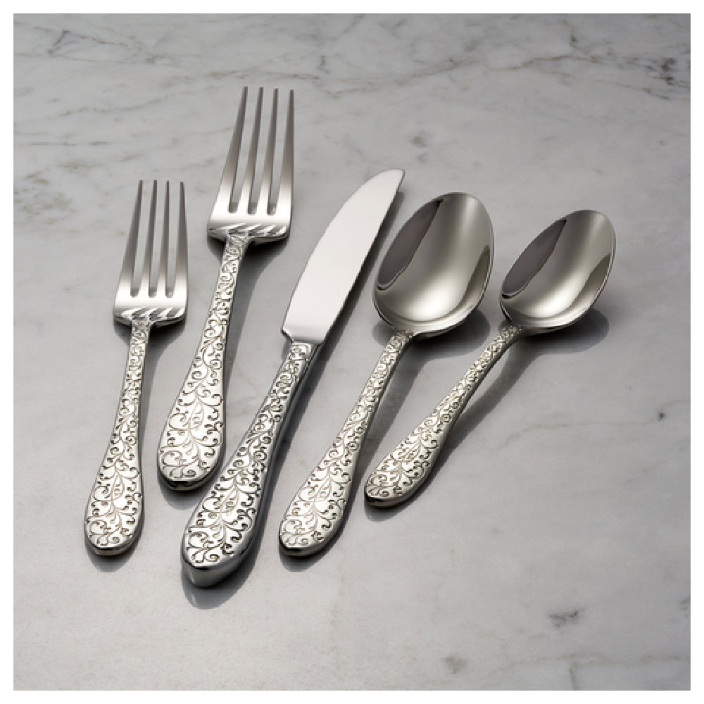The 1880 Hospitality T638SBLF Oneida® Bouillon Spoon 6-1/9" Paisley Pattern is a distinguished piece of cutlery designed for elegance and functionality in dining settings. Crafted from 18/10 stainless steel, this bouillon spoon boasts a high-polished finish that enhances its visual appeal and durability. The spoon measures 6-1/9 inches in length, making it an ideal size for savoring soups and broths. Its paisley pattern, known as Luzerne and Ivy Flourish, adds a touch of sophistication and timeless style that seamlessly complements a variety of table settings. The high-quality stainless steel construction ensures resistance to corrosion and maintains its lustrous appearance even with frequent use. This spoon is a perfect fit for upscale restaurants, hotels, and catering services seeking to provide a refined dining experience. The 1880 Hospitality collection's commitment to craftsmanship and aesthetic appeal makes this bouillon spoon a valuable addition to any cutlery collection, offering a blend of style and functionality that meets the demands of both hospitality professionals and discerning diners.