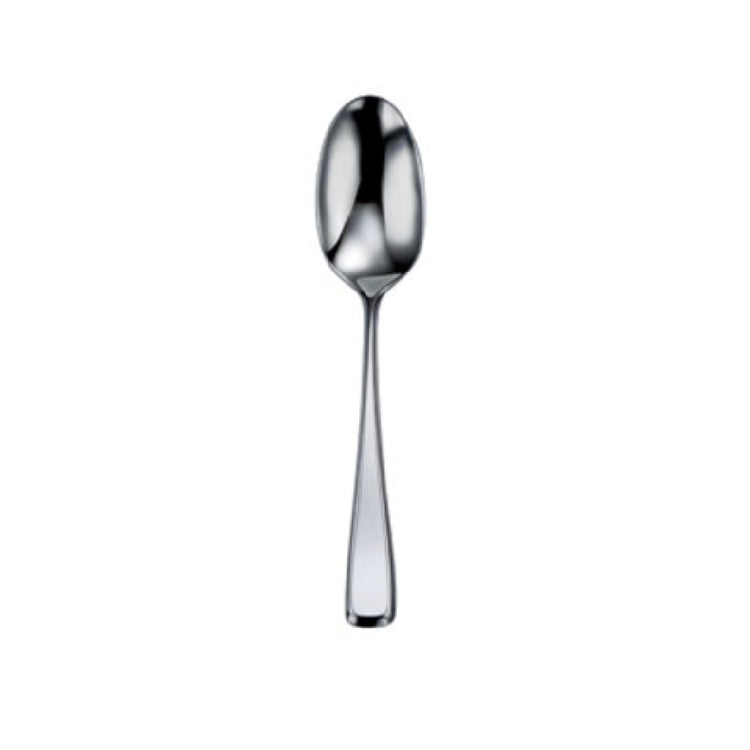 The 1880 Hospitality T936SDEF Oneida® Soup/Dessert Spoon is a meticulously designed utensil with a length of 7-1/4 inches. It features an oval bowl that offers an elegant aesthetic and practical function for both soup and dessert applications. Crafted from 18/10 stainless steel, this spoon ensures durability and a high resistance to corrosion, making it suitable for high-end hospitality environments or everyday use. The beveled handle adds a touch of sophistication while also providing a comfortable grip, enhancing the user experience. This product is part of the Perimeter™ collection, which is known for its sleek lines and modern appeal. The 1880 Hospitality T936SDEF Oneida® Soup/Dessert Spoon serves a dual purpose, catering to both the dining service sector and individual consumers seeking quality flatware for their homes. Its combination of style and substance makes it an excellent choice for upscale restaurants, hotels, and catering services that wish to present an image of elegance and reliability. The use of high-quality stainless steel not only offers a timeless shine but also ensures that each piece maintains its integrity through repeated use and washing, thereby providing lasting value to its users.