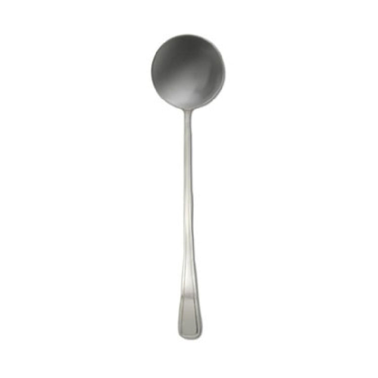 The 1880 Hospitality V012MPLF Oneida® Punch Ladle is a distinguished service tool crafted for both elegance and functionality in any hospitality setting. With a generous capacity of 9-3/10 oz., this ladle is ideal for serving large quantities of punch or beverages in style. Its total length of 13-5/8" allows for comfortable handling and effortless serving, catering to the needs of busy environments such as hotels, restaurants, and catering events. The curved border along the handle not only adds a touch of sophistication but also ensures a secure grip for the user. As a silver-plated piece, it brings an air of luxury and timelessness, aligning perfectly with upscale dining experiences and formal gatherings. The New Rim design of this ladle sets it apart as a custom, non-stock item, meaning it can bring an exclusive touch to your service collection. Its construction and design make it a valuable asset to any establishment aiming to enhance its service presentation, making it particularly appealing to markets that value quality and aesthetic in their dining ware. This punch ladle stands as a testament to both form and function in the world of hospitality service tools.