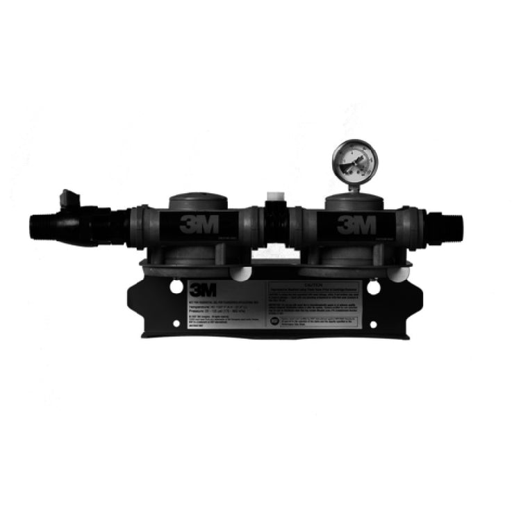 The 3M DF1XX (6228501) 3M™ Water Filtration Products Dual Flow Single Manifold Assembly is a sophisticated solution designed for various segments of the water filtration industry. This manifold assembly is equipped with a shut-off valve, a critical feature for maintaining and controlling the water flow during maintenance or emergency situations. The assembly includes a flush valve and a pressure gauge, ensuring that users can easily manage pressure levels and perform maintenance without additional tools. It features a 3/4" FNPT inlet and outlet directed to beverages, which is specifically engineered for efficient and reliable water flow management in beverage applications. Moreover, the 3/8" FNPT connection is dedicated to ice, highlighting the product's versatility and adaptability for different needs. The manifold assembly is NSF certified, guaranteeing that it meets high standards for public health protection. This certification is particularly important for businesses that prioritize safety and quality assurance in their water filtration systems. The 3M DF1XX manifold is an essential component for establishments like restaurants, cafes, and ice machine operators, where reliable and high-quality water filtration is vital for daily operations. Its robust and compact design makes it an ideal choice for enhancing water filtration efficacy across various applications.