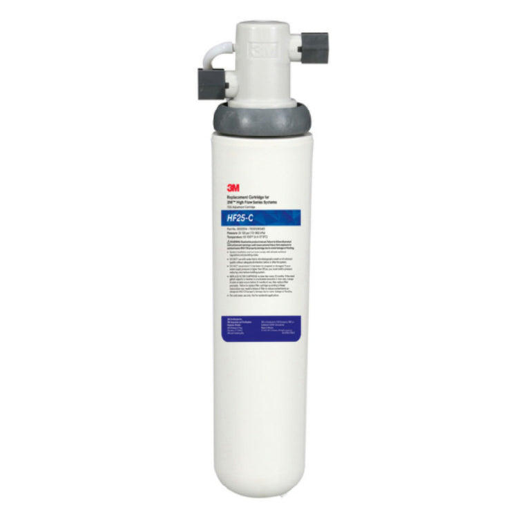 The 3M HF125-C (5639701) 3M™ Water Filtration Products TDS Adjustment System is a compact and efficient solution designed for diverse applications including steamers, combi-ovens, espresso machines, and post-RO systems. This system stands at 17 inches in height and has a diameter of 4-1/2 inches, making it suitable for space-constrained environments. Featuring a valve-in-head design and a single vessel structure, it ensures ease of operation with its 1/4-turn shut-off valve. The system can handle a maximum pressure of 125 psi at a temperature of 100°F, demonstrating its robustness under demanding conditions. It comes equipped with an integral mounting bracket and an O-ring seal cartridge filter, enhancing its durability and ease of maintenance. With its 3/8" FNPT connections, this system is designed for straightforward integration into existing setups. Additionally, it is NSF certified, providing assurance of its compliance with stringent safety and health standards. The 3M HF125-C is tailored for industry professionals who require reliable and efficient water filtration to maintain the quality and consistency of their operations, whether in culinary environments or water treatment installations.