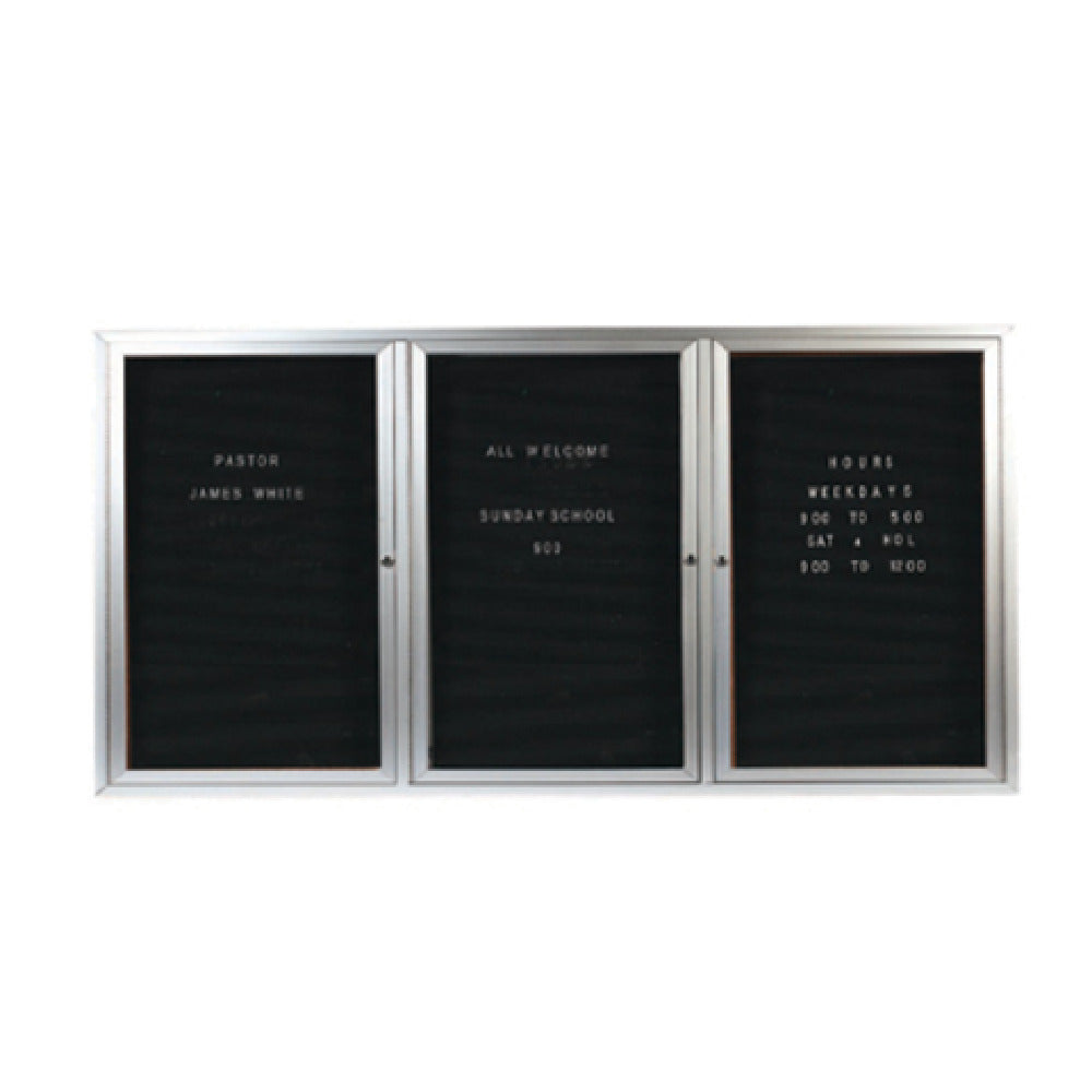 The Aarco ADC3672-3L Message Center Board - 72"W x 36"H Enclosed Face is a meticulously crafted communication tool designed to cater to various industrial and commercial needs. Encased in a durable aluminum frame, this message center board features an acrylic safety glass window, providing both visibility and protection for the contents within. Its slotted background accommodates a set of 3/4" Helvetica letters, included with an assortment tray, allowing for versatile message customization. Comprising three inset doors, each door is lockable and supported by continuous hinges, ensuring security and smooth operation. The concealed mounting brackets provide a streamlined installation process, maintaining the aesthetic appeal of the message board. With dimensions of 72 inches in width and 36 inches in height, the Aarco ADC3672-3L offers ample space for displaying messages, making it an effective solution for schools, offices, and community centers. This message center board's robust construction and secure features make it ideal for environments that prioritize communication and information sharing while maintaining a professional appearance.