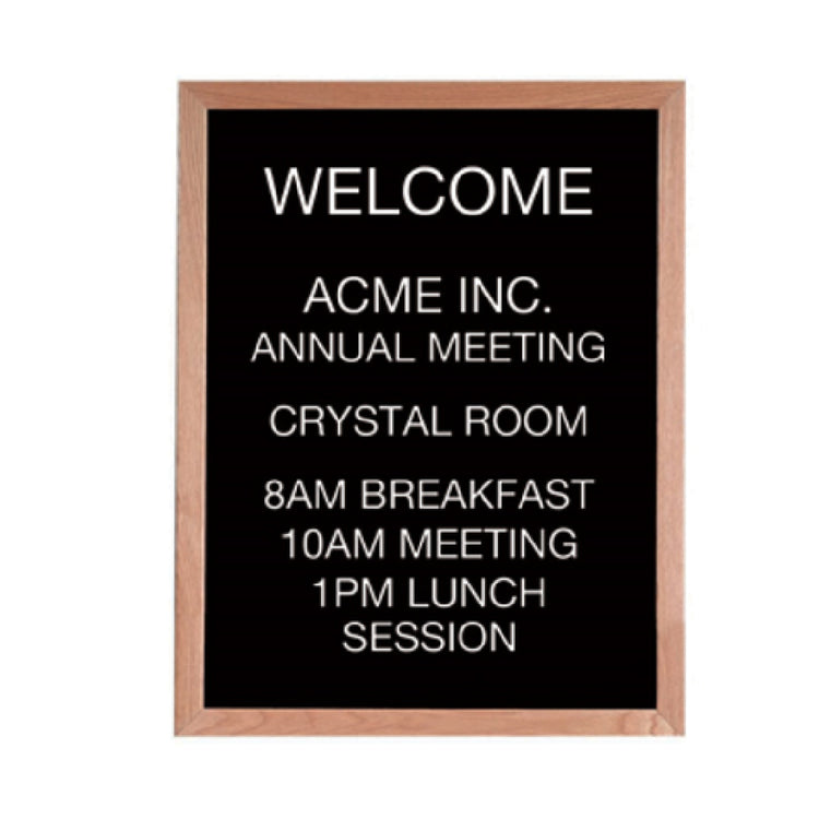 The Aarco AOFD3024L Message Center Board 24"W X 30"H Open Face is a versatile communication tool designed for efficient information display in both professional and educational settings. Measuring 24 inches in width and 30 inches in height, this message center board features an open face design, allowing for quick and easy access to the display area. The board's black felt panel provides a high-contrast backdrop, enhancing the visibility of messages and announcements, which is particularly beneficial in environments where clear communication is essential. Encased in a durable oak frame, this message center offers both aesthetic appeal and structural stability. A distinctive feature of the Aarco AOFD3024L is the inclusion of one set of 3/4-inch Helvetica letters, complete with an assortment tray, facilitating organized and customizable messaging. This product is ideal for various market segments, including corporate offices, educational institutions, and public facilities, where effective information dissemination is a priority. Its combination of functionality, ease of use, and elegant design makes it a valuable asset for any organization looking to maintain an organized and professional appearance while ensuring important messages are conveyed effectively to their intended audience.
