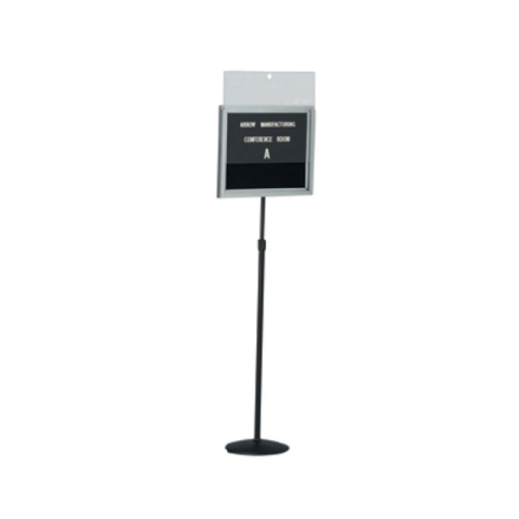 The Aarco CMD1418 Letter Board 18"W X 14"H Free Standing is a versatile display solution meticulously crafted for various professional environments. It stands out with its adjustable height range of 36" to 66", accommodating diverse presentation needs. The board features a sleek open face design, complemented by a durable aluminum frame and a stable black base and post. Further enhancing its functionality, the board incorporates a sophisticated black felt background that provides a striking contrast for the 3/4" Helvetica letters included with the set. The satin anodized finish not only ensures a modern aesthetic but also lends durability to the product. The lift-off cover allows for easy access and letter arrangement, making it a convenient choice for offices, educational institutions, and retail spaces where clear and effective communication is paramount. This letter board is engineered to offer a reliable and eye-catching medium for announcements, menus, or directional information, making it a practical asset across various industry sectors.