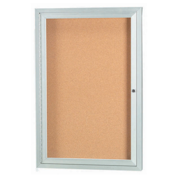The Aarco DCC2418R Aluminum Bulletin Board - 18"W X 24"H - Enclosed stands out in its category with its precisely engineered dimensions and features. With an 18-inch width and a 24-inch height, this enclosed bulletin board is designed to meet diverse needs across various industry segments. It features a natural pebble grain cork back panel that provides a robust surface for pinning important notices, documents, or educational materials. The board is enclosed with a single door, which adds an extra layer of protection for your displayed items, keeping them secure from external elements. The clear satin anodized finish on the aluminum frame not only enhances durability but also gives it a sleek, modern appearance that fits well in professional, educational, or community environments. This bulletin board is a versatile choice, serving as an essential communication tool in offices, schools, and institutions, where maintaining organized display areas is crucial. The Aarco DCC2418R combines functionality with a polished aesthetic, making it a valuable asset for effectively showcasing information while ensuring longevity and reliability in its construction.