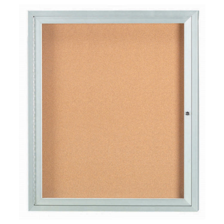 The Aarco DCC3630RI Aluminum Bulletin Board is a 30-inch wide by 36-inch high enclosed unit designed for various professional settings that require a reliable display solution. This bulletin board features a single door with an illuminating function, ensuring that messages and announcements are visible in all lighting conditions. The interior is lined with a natural pebble grain cork back panel, which provides a durable and aesthetically pleasing surface for posting notices. The board is enclosed in a clear satin anodized aluminum finish, offering both a sleek appearance and robust protection against the elements. Ideal for use in educational institutions, corporate offices, or community centers, the Aarco DCC3630RI provides a secure and professional medium for information display. Its enclosed design protects contents from tampering, while the illumination enhances visibility. The combination of quality materials and practical design details make this bulletin board a valuable asset for communicating efficiently in a variety of environments.