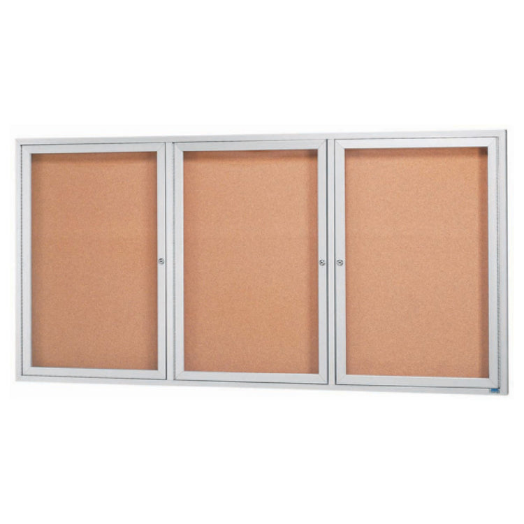 The Aarco DCC3672-3R Aluminum Bulletin Board 72"W x 36"H Enclosed is a meticulously designed communication tool tailored to meet the needs of various segment markets, including educational institutions, corporate offices, and community centers. This board features three doors, providing convenient access to its contents and facilitating efficient organization of information. The natural pebble grain cork back panel offers a durable surface for posting notices, announcements, and other important materials, ensuring they remain securely in place. The clear satin anodized finish not only enhances the aesthetic appeal of the bulletin board but also ensures long-lasting durability, making it a reliable choice for high-traffic areas. The enclosed design protects posted materials from external environmental factors, maintaining their visibility and readability over time. Measuring 72 inches in width and 36 inches in height, this board provides ample space for displaying a considerable amount of information. Constructed with an aluminum frame, the Aarco DCC3672-3R is lightweight yet sturdy, allowing for easy installation and maintenance. Its thoughtful design and functional features make it an indispensable tool for effectively disseminating information in various settings, enhancing communication and engagement among diverse audiences.